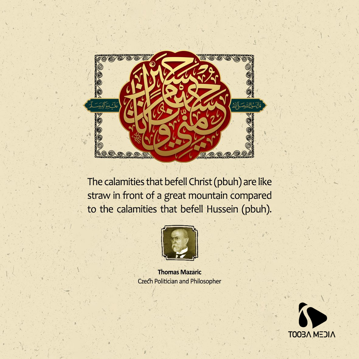 Thomas Mazaric, Czech Politician and Philosopher: The calamities that befell Christ (pbuh) are like straw in front of a great mountain compared to the calamities that befell Hussein (pbuh).