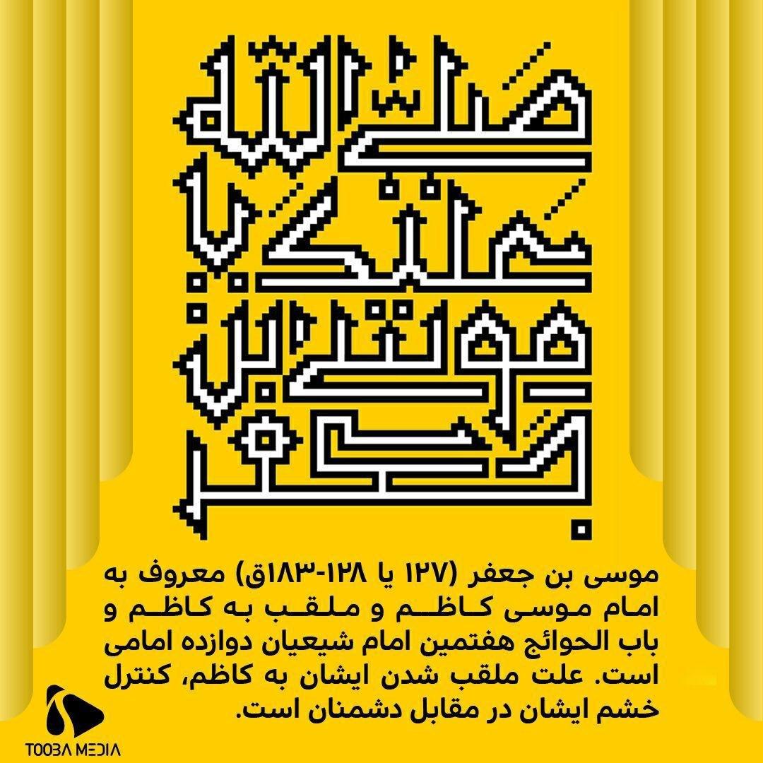 موسی بن جعفر معروف به امام موسی کاظم و ملقب به کاظم و باب الحوائج هفتمین امام شیعیان دوازده امامی است. علت ملقب شدن ایشان به کاظم کنترل خشم ایشان در مقابل دشمنان است.