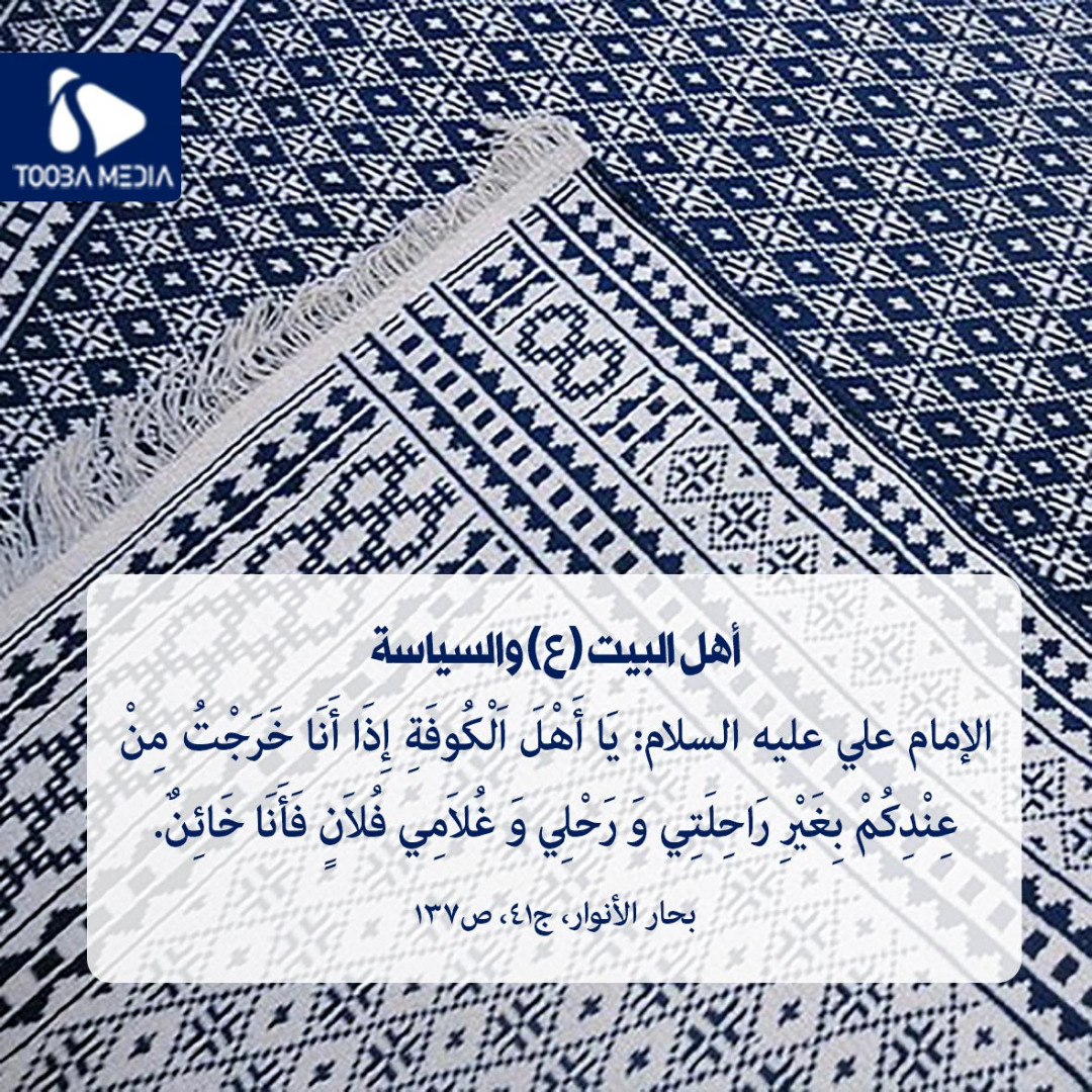 الام علی علیه السلام: يَا أَهْلَ اَلْكُوفَةِ إِذَا أَنَا خَرَجْتُ مِنْ عِنْدِكُمْ بِغَيْرِ رَاحِلَتِي وَ رَحْلِي وَ غُلاَمِي فُلاَنٍ فَأَنَا خَائِنٌ بحار الأنوار ج۴۱ ص۱۳۷