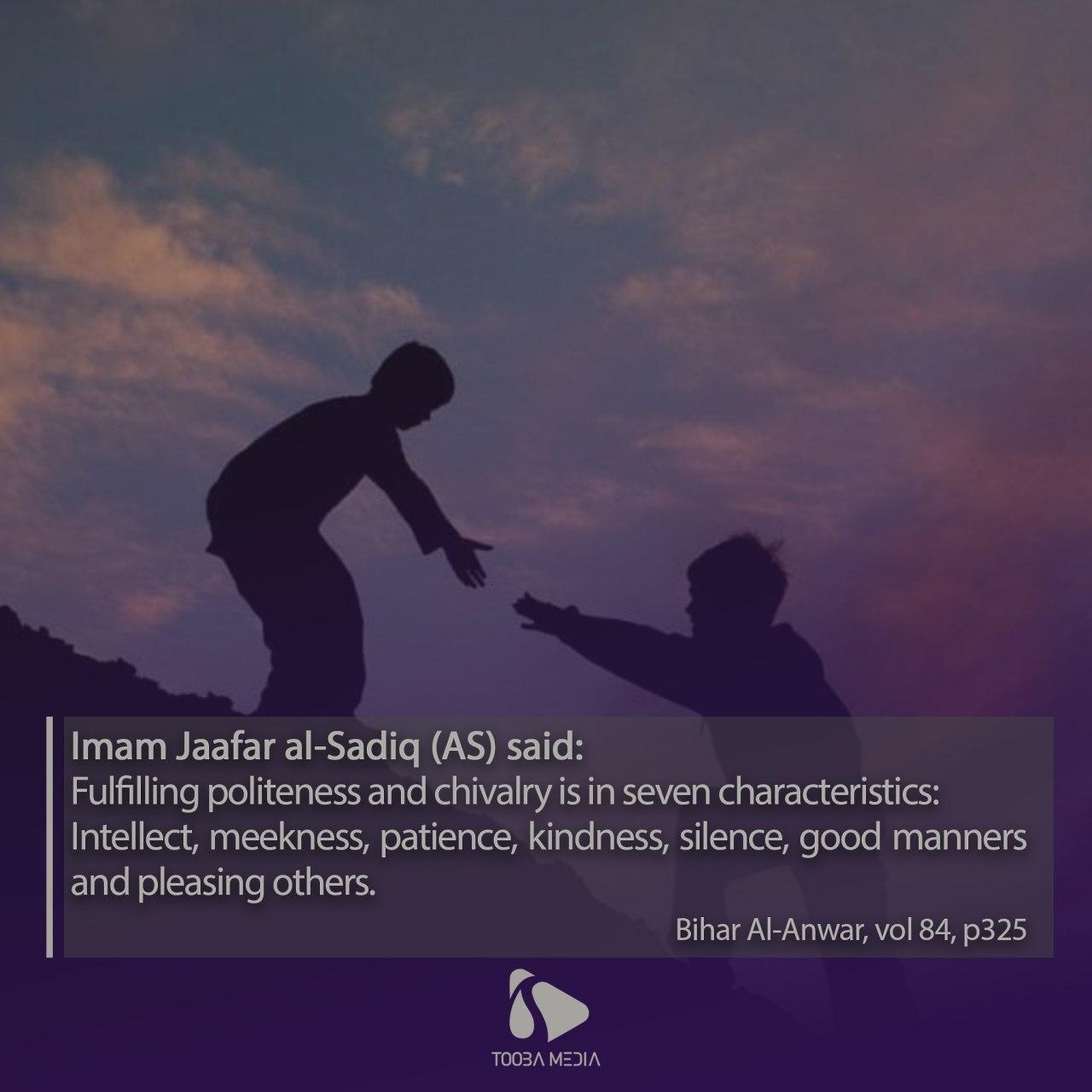 Fulfilling politeness and chivalry is in seven characteristics: Intellect, meekness, patience, kindness, silence, good manners and pleasing others.