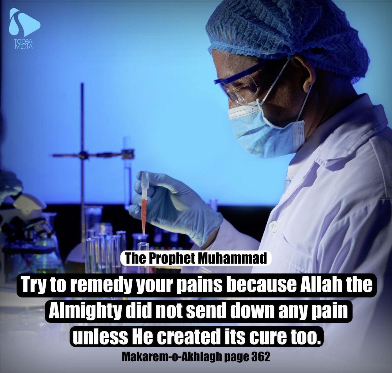Try to remedy your pains because of Allah the Almighty did not send down any pain unless He created its cure too.