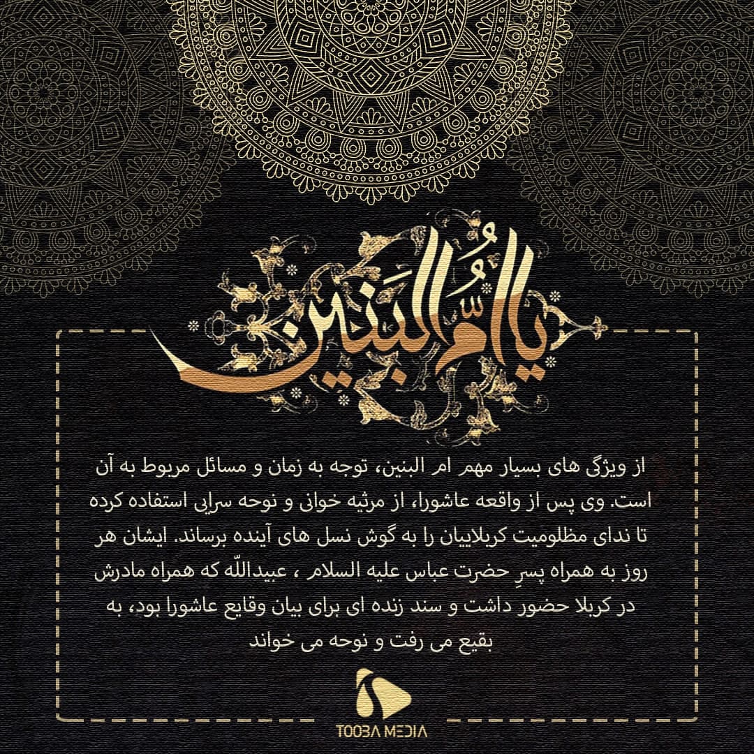 از ویژگی های بسیار مهم ام البنین، توجه به زمان و مسائل مربوط به آن است. وی پس از واقعه عاشورا، از مرثیه خوانی و نوحه سرایی استفاده کرده تا ندای مظلومیت کربلاییان را به گوش نسل های آینده برساند. ایشان هر روز به همراه پسرِ حضرت عباس علیه السلام ، عبیداللّه که همراه مادرش…