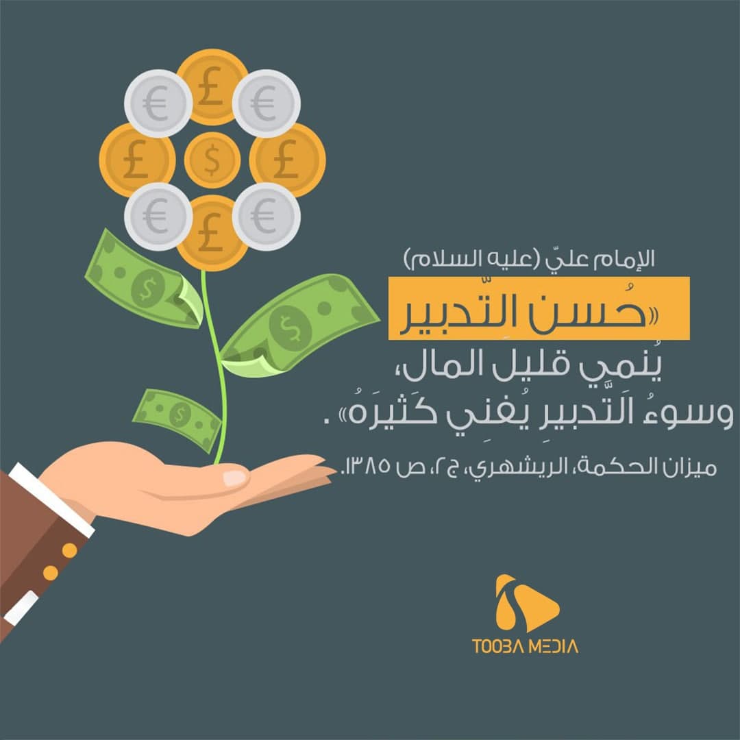 عن الإمام عليّ علیه السلام: حُسنُ التَّدبيرِ يُنمِي قَليلَ المالِ ، و سُوءُ التَّدبيرِ يُفني كَثِيرَهُ میزان الحکمة-ج2ص1385
